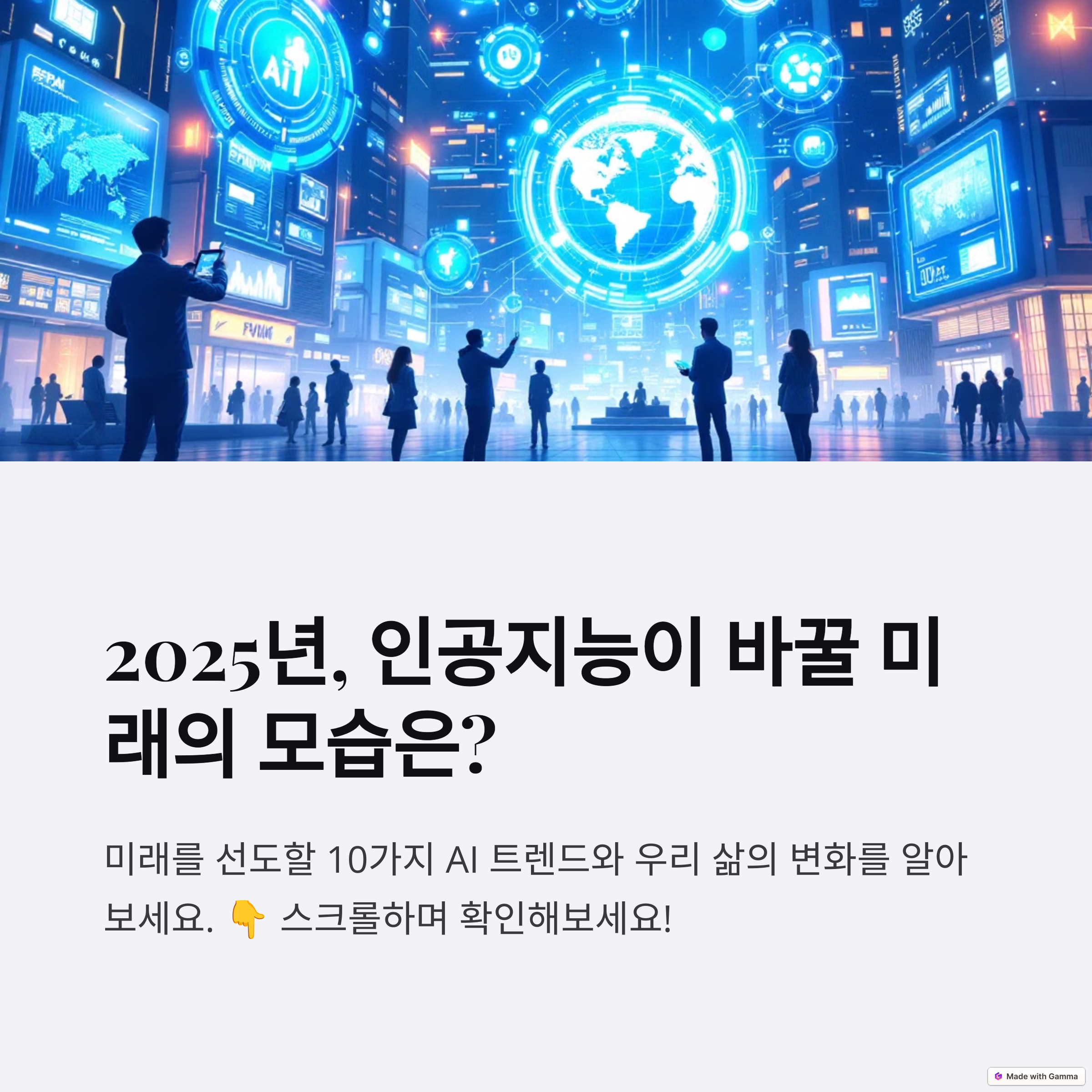 2025년에는 AI 기술이 더욱 정교해지고 다양한 산업에 걸쳐 혁신을 불러올 것입니다. AI는 단순한 자동화를 넘어 스스로 의사결정을 내리고 인간과 협력하며 새로운 가치를 창출하는 방향으로 발전하고 있습니다. 이번 글에서는 2025년 주목해야 할 인공지능 트렌드 TOP 10을 살펴보겠습니다.