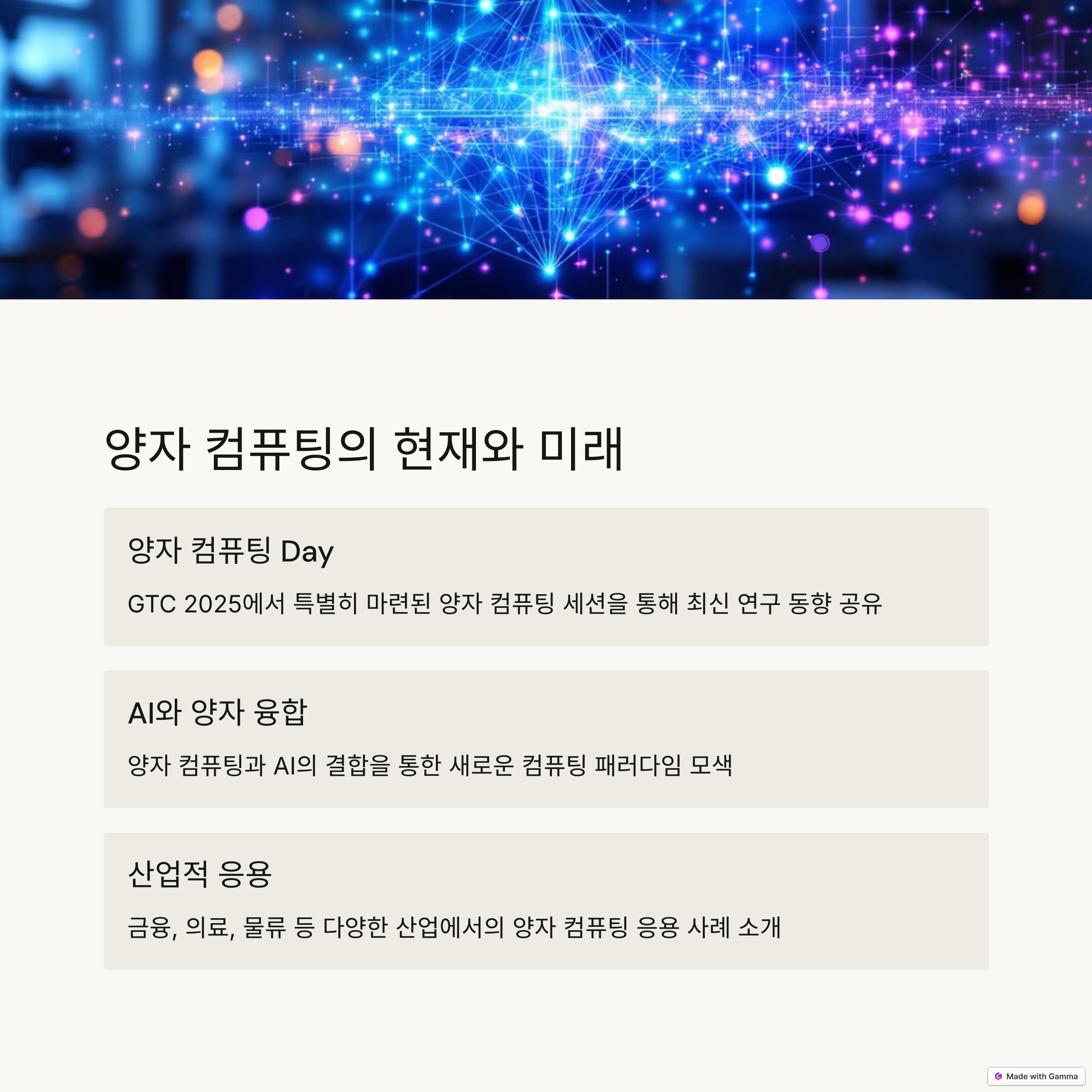 GTC 2025에서는 '양자 컴퓨팅 Day'를 통해 차세대 양자 기술과 AI의 융합에 대해 심도 깊게 논의하는 자리가 마련됩니다. 글로벌 연구진과 기업들이 참여해 양자 컴퓨팅의 현재와 미래를 소개할 예정입니다.